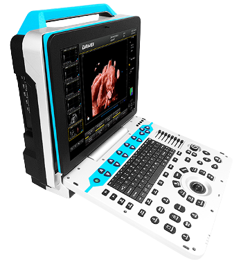 Ultrasonido portátil especializado en gineco-obstetricia con capacidades 4D. Diseño ergonómico y batería de larga duración.